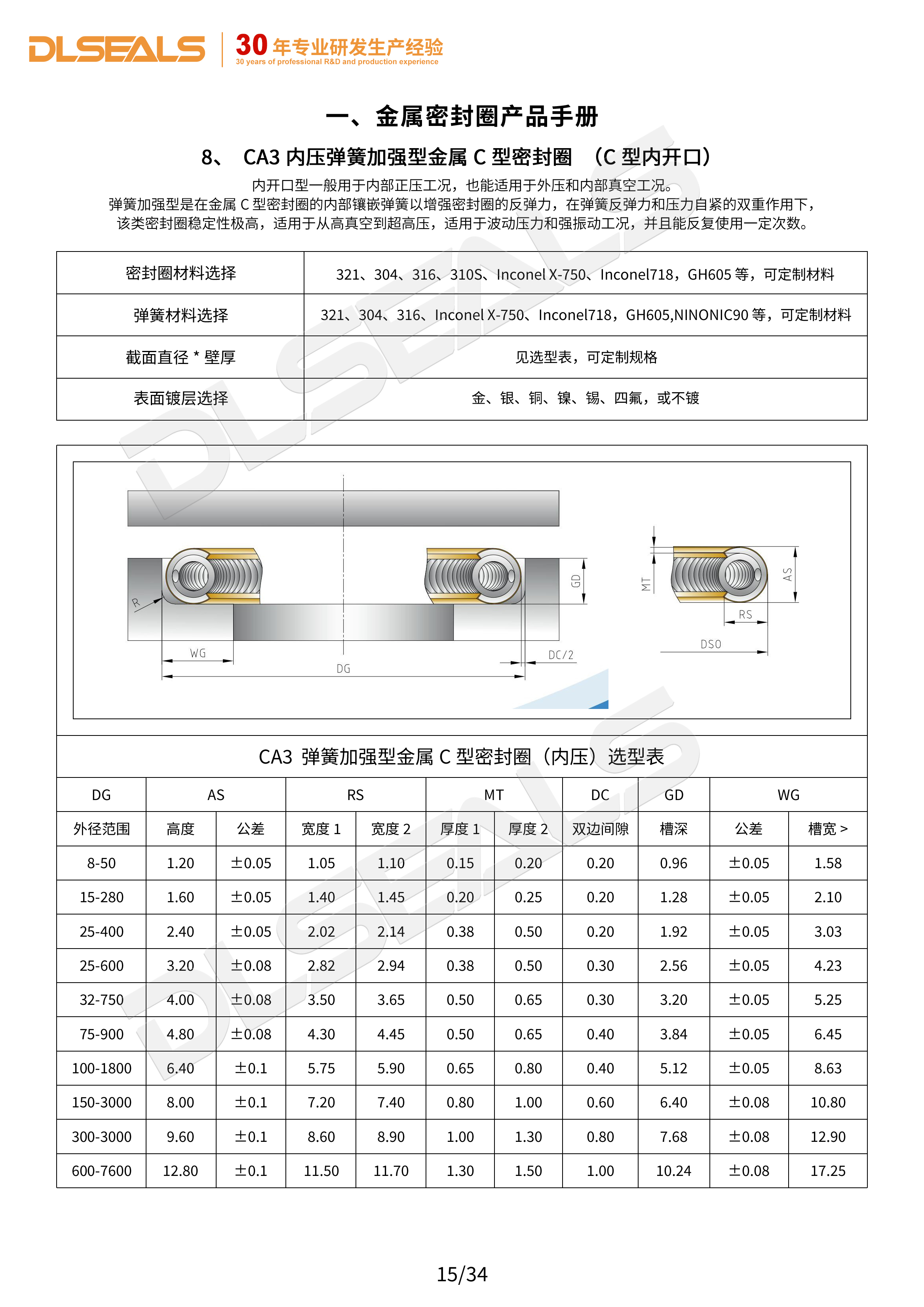 內(nèi)壓彈簧加強(qiáng)型金屬C型密封圈